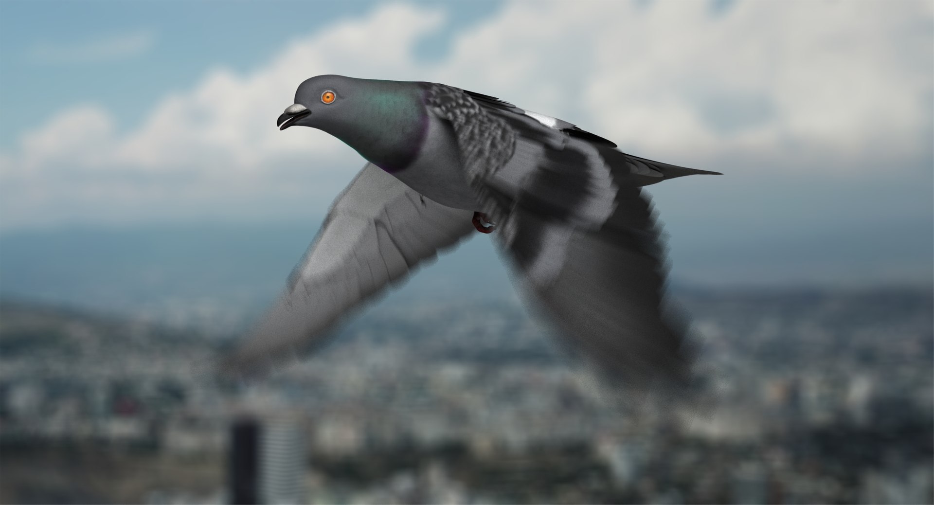 Dark_Pigeon_Animation_Fly1.mb - contains infinite flying cycle animation, slow motion (32 frames), you can set any length of your clip.