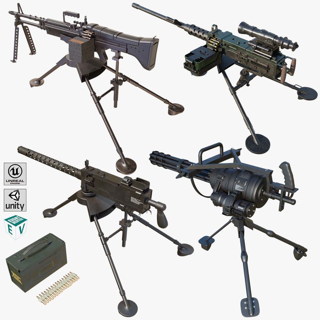 4 Machine Guns All PBR Unity UE Textures Included