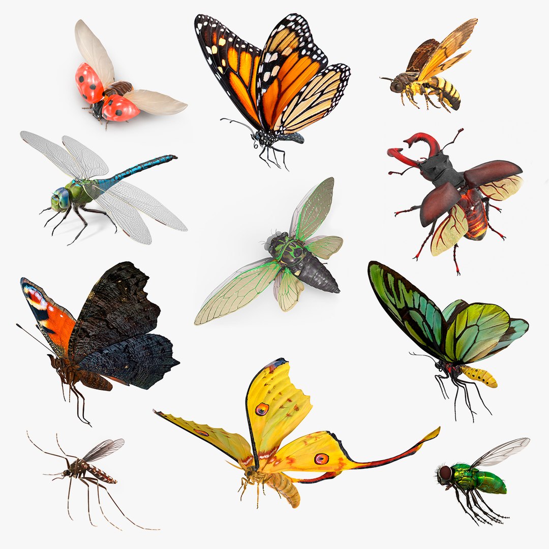 Flying Insects Collection 6 is a set of 3D models of beetle insects, moth insects, mosquito flies, butterfly insects etc..