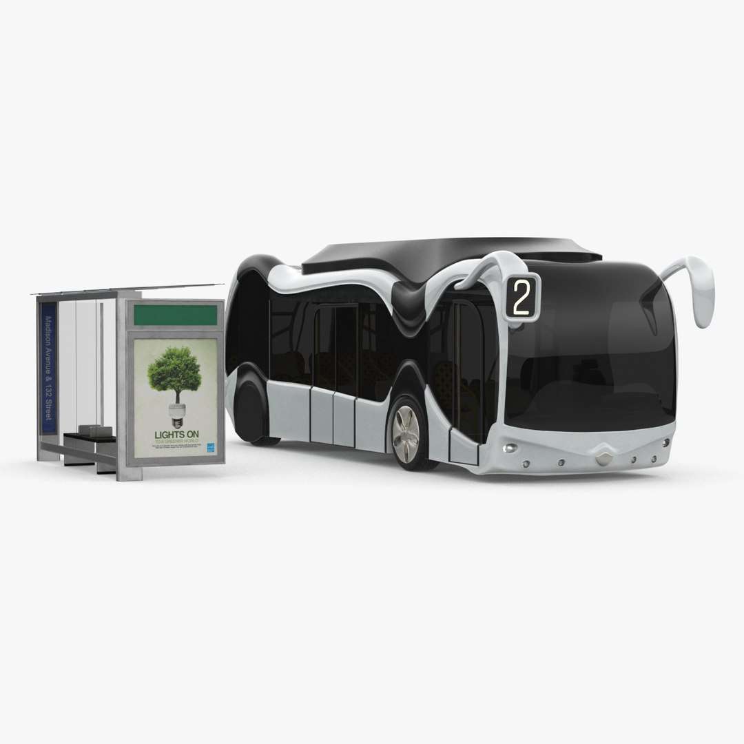 Futuristic Public Bus with Bus Stop Shelter