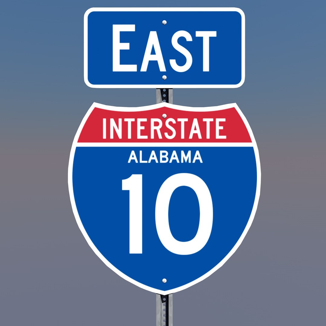 A complete set of Interstate 10 marker signs for the state of Alabama. All interstate route markers and auxiliaries are modeled to real world size.