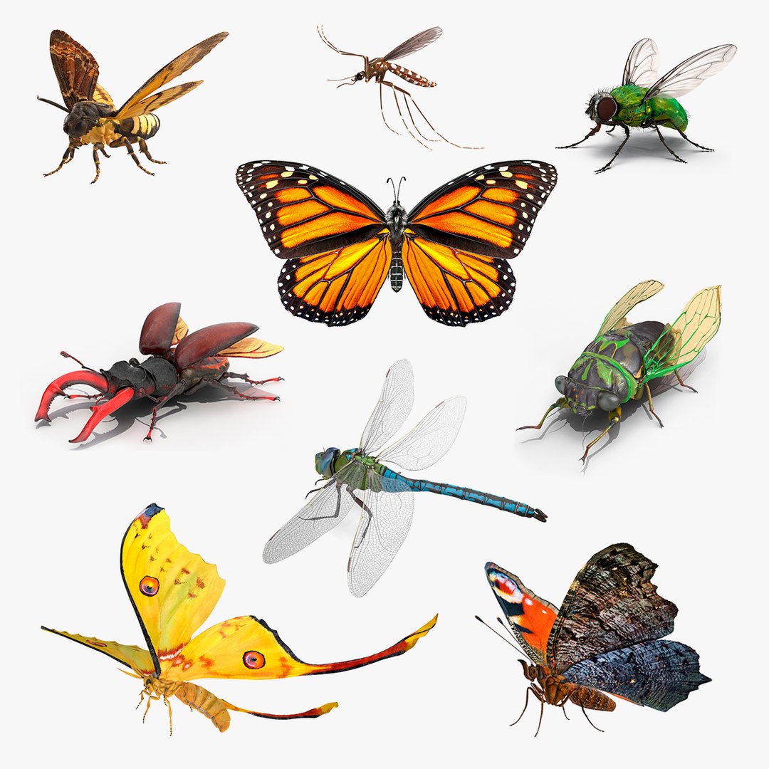 The models are created with precise textures and realistic wing animations. Each insect is fully rigged to allow fluid and natural flight animations, making them suitable for use in various digital environments.