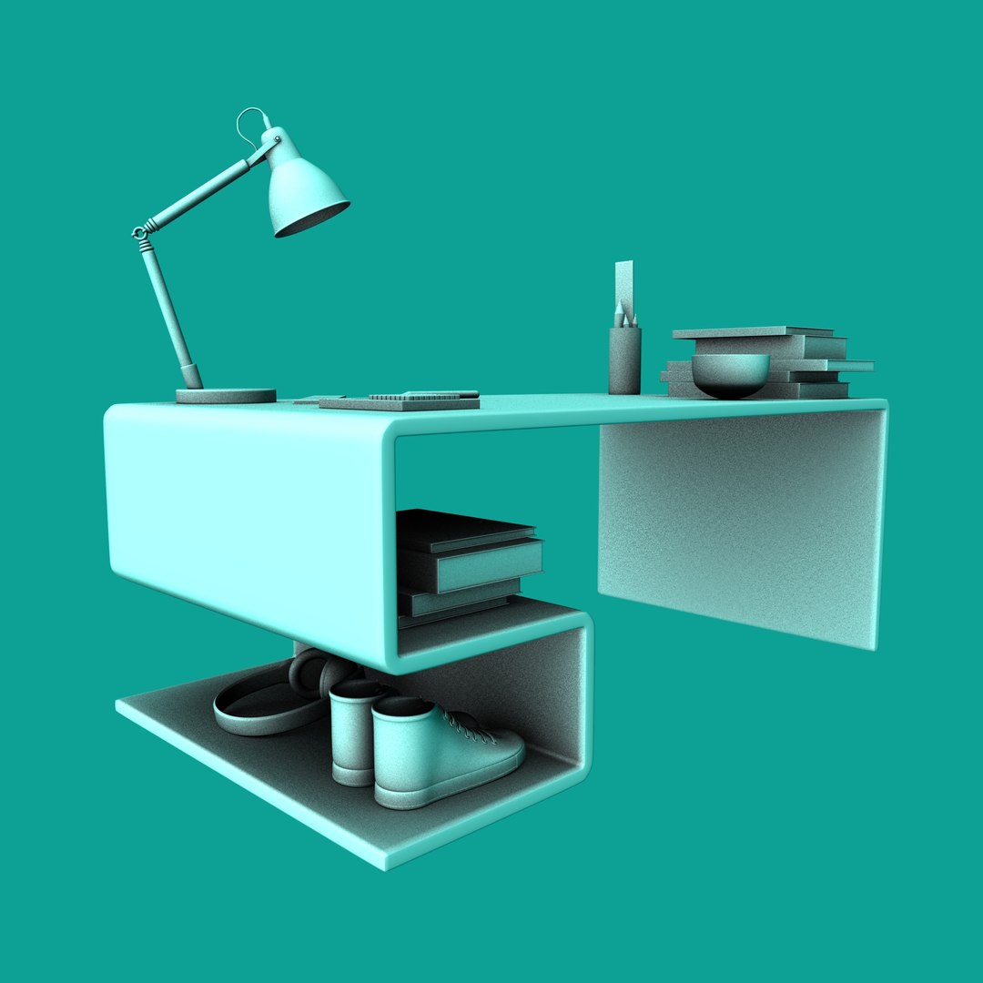 table set with books ,lamp,shoes...............,