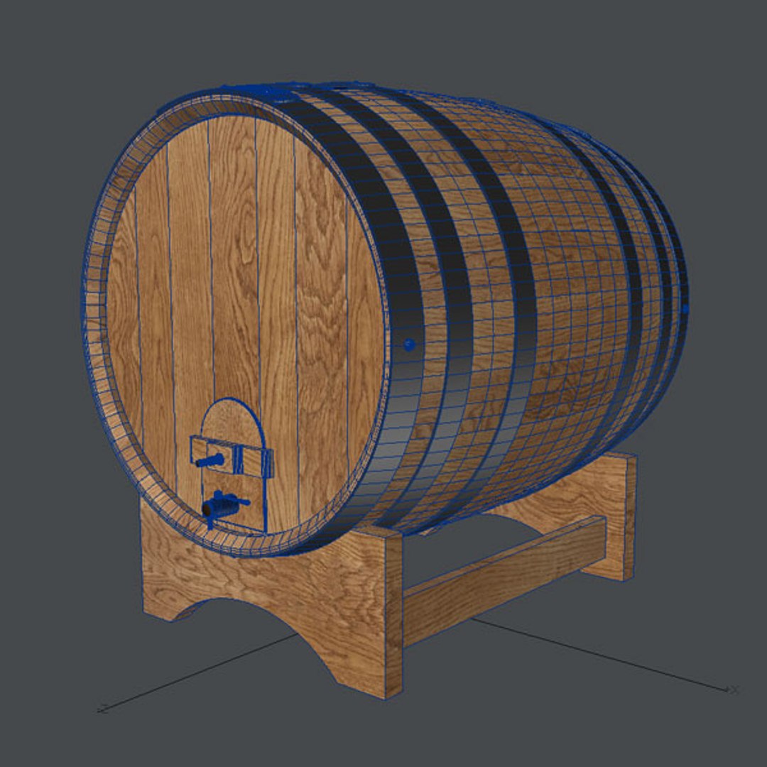 Single wine barrel, made in lightwave, checked on 3dsMax (image on black background), including UV and textures.