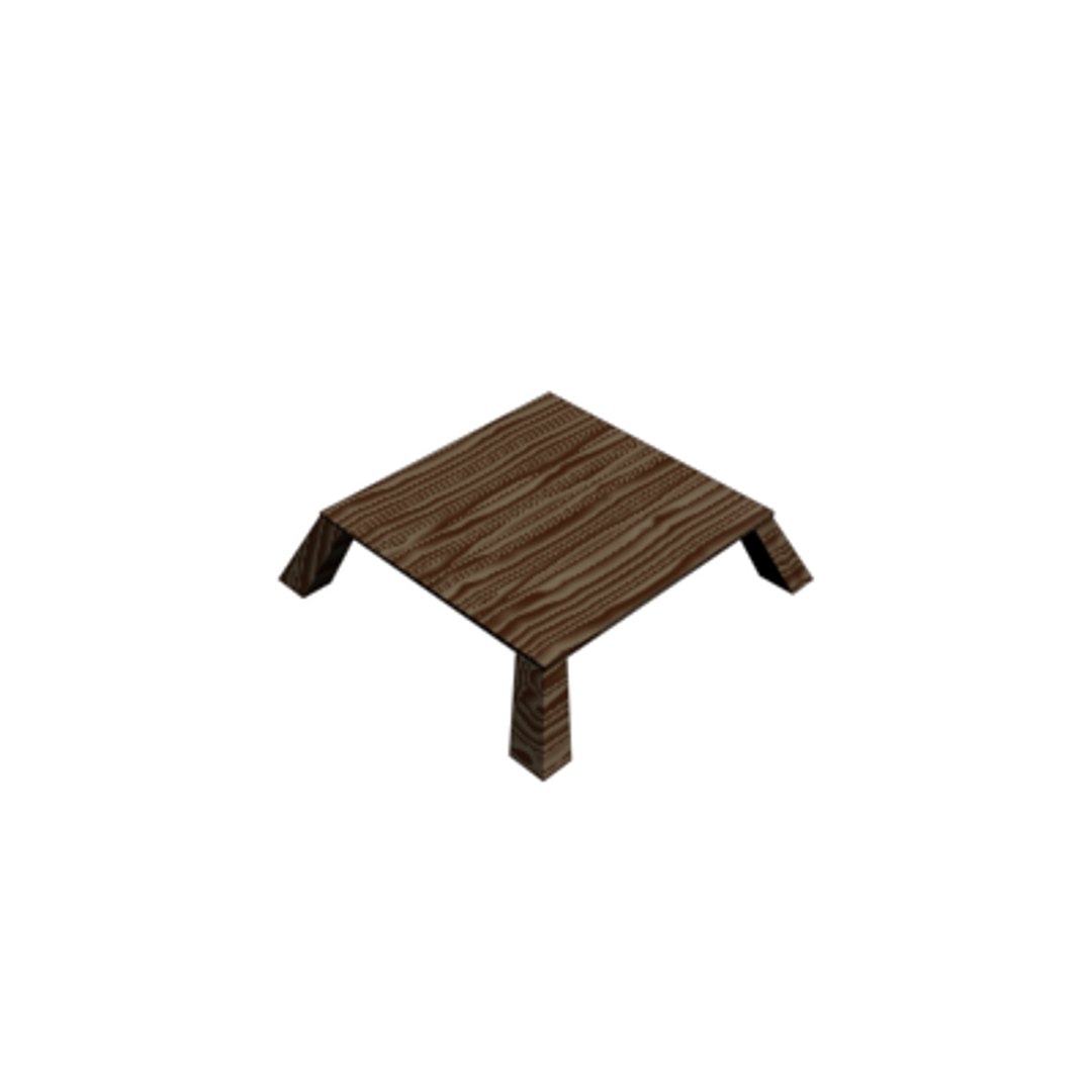 Low, four-legged wooden table, low-poly, suitable for japanese style interior. Works well with reactor in 3ds Max 7.